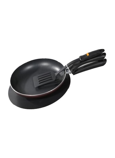 Delcasa 3-Piece Cookware Set Black Tawa 28, Frypan 24centimeter