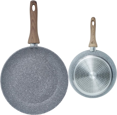 Homeway 26cm Marble Coated Fry Pan With 5 Layer Non-Stick Coating, 3mm Thickness, Soft Touch Wooden Handle, Induction Friendly And Forged Construction, Grey - HW3414