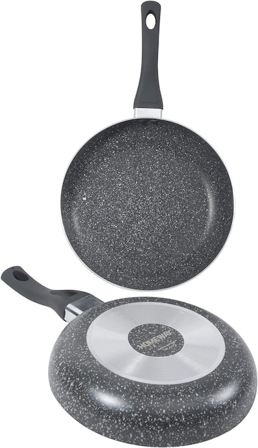 Homeway Set Of 2 Non-Stick Fry Pan With 5 Layer Marble Coating, Gas & Induction Friendly, 3mm Thickness, Grey - HW3458 (24cm + 26cm)