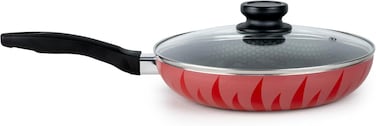 SENSTAN Flame Design Fry Pan with Glass Lid Non-Stick Frying Pan 24x5.0CM Skillet Flame-Patterned Sauté Pan Premium Cooking Pan