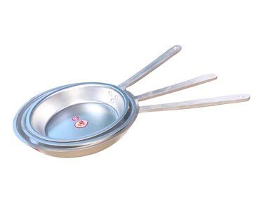 - Set of 3 frying pans to meet all your kitchen needs.Cast aluminium handles on all pans give more support and durability.Can be used in the oven for baking.[]