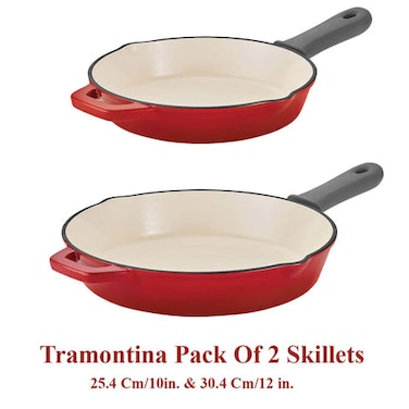 Tramontina Enameled Cast Iron Skillets, Pack of 2 Set - 10 & 12 Inches