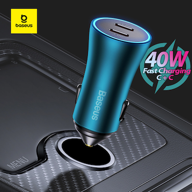 Baseus Fast Car Charger PD 40W Dual USB C Ports Fast Charging Car Power Adapter for iPhone 14/iPhone 14 Pro/iPhone 14 Pro Max/13 Pro Max/13/12/11, New iPad 9, iPad mini 6 2021,Galaxy S22 Blue