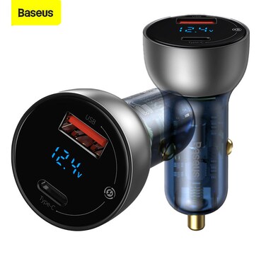 - Producent Baseus Name Particular Digital Display QC+PPS Dual Quick Charger Car Charger 65W Product code CCKX-C0G Material Aluminum + ABS + PC Color Gray Input 12-24 V Output USB: 5V/5A; 5V/4,5A; 5V/3A; 9V/3A; 12V/2.5A; 20V/1.5A Max. USB-C: 5V/3A; 9V/3A; 12V/3A; 15V/3A; 20V/3.25A Max. Output power 18W + 45W (63W) Dimensions 34 x 68 mm Weight ~30 g