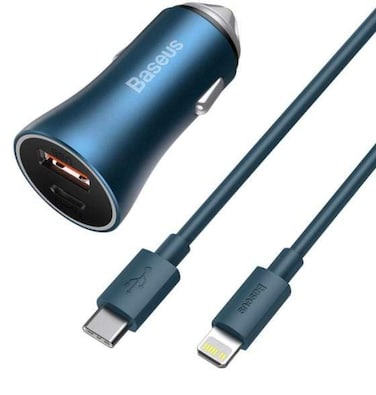 - <p>Baseus Golden Contactor Pro Dual Quick Charger Car Charger U+C 40W(With Baseus Simple Wisdom Data Cable Type-C to iP 1m)<p>Baseus Golden Contactor Pro Dual Quick Charger Car Charger U+C 40W<p>Do you need a car charger to quickly charge two devices at the same time? When you drive, connect them to Baseus product equipped with USB and USB-C ports. It supports quick charging protocols – Xiaomi and Samsung – because it has a built-in BPS II fast technology.<p>The charger is not only efficient but also very aesthetic. A tasteful metal casing looks good inside the car and is resistant to overheating. The device also has other kinds of protection – overcurrent protection and against short-circuit. Thanks to its perfect shape, it remains stable even when driving on a bumpy road.<p>Specification:<p>Brand: Baseus<p>Model: CCJDZ-C<p>Input: DC 12-24V<p>Material: Aluminum + ABS + PC<p>Weight: 24,6 g<p>USB-A: 5V/3A, 9V/2A, 10V/2A, 12V/1,5A, 20W Max.<p>Type-C:5V/3A, 9V/2.22A, 12V/1.6A, 15V/1.3A, 20V/1A, 20W Max<p>Total capacity: 20W + 20W (40W Max)<p>Compatible with: Samsung, Xiaomi, Huawei, iPhone, etc. (models which support quick charging protocols).<p>Content of the set:<p>1 x car charger<p>1 x operating manual<p>1 x USB Type C - Lightning cable<p>Major features:<p>Fast charging with a power of up to 40 W (20 W per USB port).<p>Completely metal casing.<p>Built-in two ports for charging two devices at a time. USB and USB Type-C.<p>Built-in LED light for easy identification of charger at night.<p>Built-in protection counteracting phone damage when charging.<p>Many quick charging standards supported.<p>Phone quick charging<p>Does your phone support quick charging protocol? Baseus car charger supports the following technologies: Power Delivery 20 W, Quick Charge 4+, AFC (Samsung Adaptive Fast Charging), FCP (Huawei Fast Charger Protocol), SCP (Huawei SuperCharge Protocol).<p>The battery can reach 50% in just 30 minutes!<p>Connecting 2 devices at a time<p>You no longer need to decide which device to charge in the first place and you don’t have to take two chargers with you. This charger is equipped with two ports, USB and USB Type-C, so that it can support two phones at a time.<p>Effective heat release<p>Do not worry about an overheating charger and tablet or phone connected to it. The quick heat discharge system assures safety and comfort. This is thanks to metal housing.<p>Built-in LED light<p>LED light informs you about battery level – it is a very convenient, especially when it gets dark.<p>Built-in protection<p>Protection against high voltage<p>Overcurrent protection<p>Protection against overload<p>Protection against electrostatic voltage<p>Protection against short circuit<p>Protection against overheating<p>Phone cable included with charger<p>The charger comes with a USB Type C - Lightning cable. Thanks to this, you will not have to take your charging cable from home to connect your phone in the car. The cable is very durable and allows you to charge the iPhone with Power Delivery technology.<p></p>
