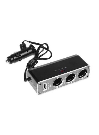 Generic - Car Phone Charger With Triple Lighter Socket Black/Silver