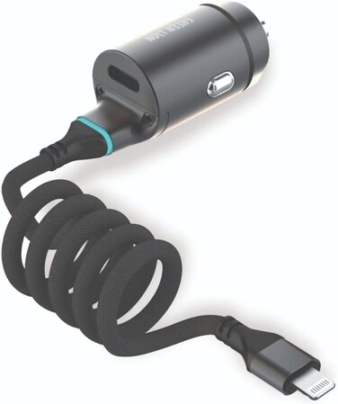 Product Description: Green Lion 45W PD Car Charger with 1.2M Tough & Durable Lightning Cable - Black