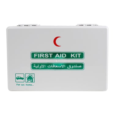• Kit includes - 1x adhesive tape(2.5x5yds),40x adhesive bandage(72x19mm),4x sterile gauze pad(5cmx5cm),4x sterile gauze pad (10cmx10cm),2x sterile eye pad,20x sterile cotton ball,10x alcohol prepad 10x BZK antiseptic swab,5x cleansing wipe,1x elastic bandage(7.5cmx4m),2x triangular bandage (96x96x136cm),1x gauze bandage(5cmx5yds),1x scissor,1x plastic tweezer,1x first aid box,1x first aid guide(Arabic)
