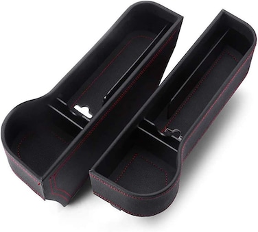 Roboraty Car Seat Gap Organiser Slot Storage Box, Leather Storage Multi-Function Slot Box, Water Cup Holder, Charging Cable Hole Design, For Phone/Card/Key/Wallet/Coin, 2Pcs