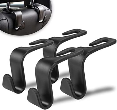 SHOWAY Car Seat Headrest Hooks, Car Hook Hangers Storage Organizer Interior Accessories for Purse Coats Umbrellas Grocery Bags Handbag, 4-Pack