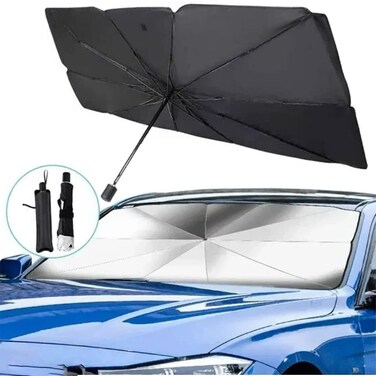 SUN PROTECTION: The sun shade umbrella with high-quality not only reflects the sun lights perfectly but also prevents the dashboard and upholstery from fading and s plus significantly shortens the time needed to cool down your vehicle, EASY TO FOLD: Our car sun shade is very convenient for daily use and is the ideal sun shade accessory for cars in summer! Foldable Compact Design Comes in Easy-Place Pouch – Every detail matters! It is easy to fold and does not occupy space in the car, PREMIUM MATERIAL: The materials of this sun shade are high-quality, different from ordinary aluminum foil materials, and made of composite peptide materials, which are not easy to be damaged under high temperatures for a long time, and keep the air in the car fresh, COMPATIBLE WITH MOST VEHICLES: Whether you own a sedan, a truck, an SUV, a minivan, or even a van, our car sunshade wraps around the windshield and achieves maximum coverage for your vehicle, and provides you with maximum sun protection.