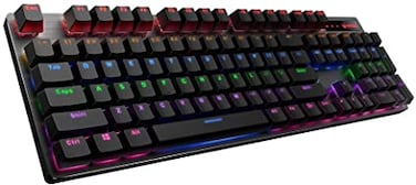 - Aluminum Alloy surface cover, suspension type keycap design Mix-colored backlight with adjustable brightness High-speed response, programmable keys Conflict-free design for all keys Spill-resistant design Onboard memory, save and play Gold plated USB connector Braided fiber cable