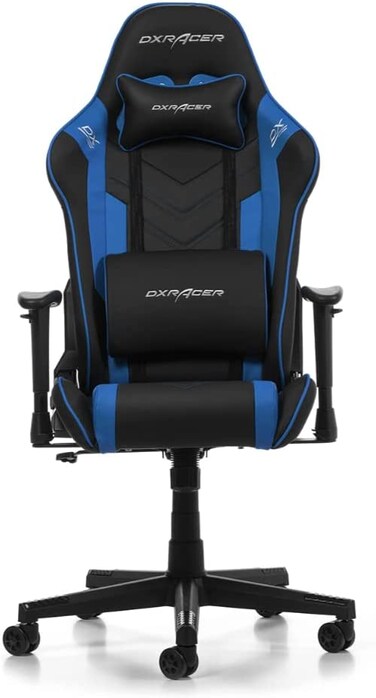 DXRacer P Series Gaming Chair-HOW YOU PLAY THE GAME Headrest & Lumbar Cushion Additional headrest and lumbar pillows provide support exactly where you need it and enhanced ergonomics. Finished with Racing Style Built with the leather preferred by racing seats together with color combination design and detail stitching. Higher Density Mold Shaping Foam The elasticity of the foam adjusts to your body shape and provides full-body support, you'll feel comfort like no other. U-shaped Armrest Padded armrests are adjustable for optimal support of the forearm to relieve wrist pressure and muscle strain. What's In The Box Lumbar Cushion & Headrest DXRacer Backrest, Seat base with Armrests 27.5" Nylon Base, Conventional Tilt Mechanism Class 3 Hydraulic Piston, Hydraulic Sleeve 5x PU Casters, 2x Shell Assembly Instructions & Basic Tool Kit Set Contains: Chair