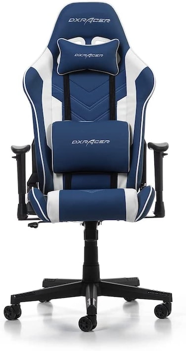 DXRacer P132 Series Gaming ChairHeadrest Lumbar CushionAdditional headrest and lumbar pillows provide support exactly where you need it and enhanced ergonomics.Finished with Racing StyleBuilt with the leather preferred by racing seats together with color combination design and detail stitching.Higher Density Mold Shaping FoamThe elasticity of the foam adjusts to your body shape and provides full body support, youll feel comfort like no other.U shaped ArmrestPadded armrests are adjustable for optimal support of the forearm to relieve wrist pressure and muscle strain.What's In The BoxLumbar Cushion HeadrestDXRacer Backrest, Seatbase with Armrests27.5 Nylon Base, Conventional Tilt MechanismClass 3 Hydraulic Piston, Hydraulic Sleeve5x PU Casters, 2x ShellAssembly Instructions Basic Tool Kit