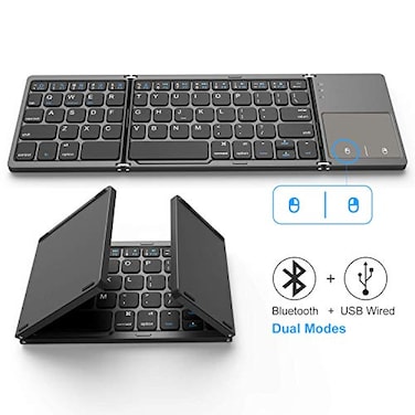 Foldable Bluetooth Keyboard, Jelly Comb Dual Mode Bluetooth & USB Wired Rechargable Portable Mini BT Wireless Keyboard with Touchpad Mouse for Android, Windows, PC, Tablet-Dark Gray