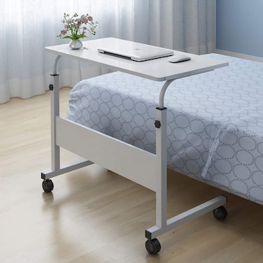 - <p>Premium quality: The panel is made of high quality Sheet, the frame is premium steel material which is corrosion-resistant.<p>Height adjustable: 70 ~ 90 cm, adjust the tightness of the handle to control the overall lifting height<p>Card slot: All tablet phones are OK, charging and watching movies, and various uses, comfortable life depends on you<p>Versatile - Use: as notebook table, overbed table, hospital table, sofa desk, or on a event, for both home and office<p>Product Dimension:Color:E-White - 40*80cm<p>Features:<p>1. The notebook computer stand material: Panel material is made of high-quality Sheet, if there is dust, water stains, you only need gently wipe it clean<p>2. 70-90 cm height feet frame and fits under most beds & chairs.<p>3. Removable: It is convenient for you to use it whenever you on the bed or other places.<p>4. Special type structural design: Solid structure, does not occupy any place, you can move to the bed, sofa edge, to bring you a comfortable life experience.<p>Specifications:<p>Product material: medium-density fiberboard+carbon steel