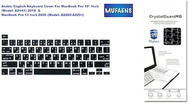 - MUFAENS Arabic English Keyboard Cover for MacBook Pro 16" Inch (Model: A2141) 2019 and MacBook Pro 13 Inch 2020 (Model: A2289/A2251) US Layout Protector (Black)