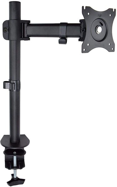 RDN - Single Desk Monitor Stand with Clamp for LCD LED Computer Displays 13 to 27" Inch-Heavy Duty Lift Articulating Arm Mount Fits VESA 75 and 100