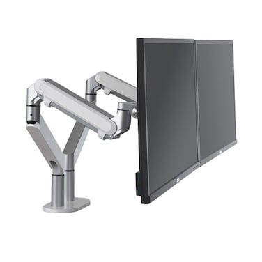 UPERGO OZ-2 Aluminum Gas Spring Dual Monitor Arm, Stand And Mount For Gaming And Office Use, For upto 27", Each Arm upto 9 KG - Silver