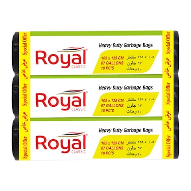 Royal Classic 67 Gallon Heavy Duty Roll Black Garbage Bags 10 Garbage Bags 3PCS