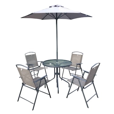 The Textline Patio Set 6Pcs Without Umbrella Base is a stylish and comfortable outdoor furniture set perfect for lounging and entertaining on your patio or deck.