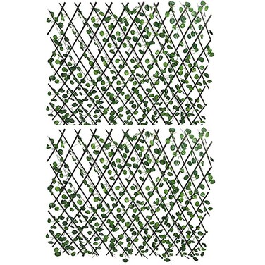 2 Pack Bamboo Wooden Fence Artificial Plants Green Ivy Leaf Expandable Wicker for Home Garden