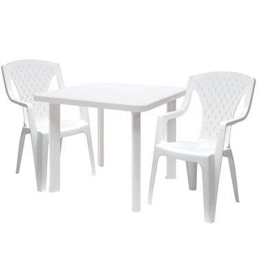 Cosmoplast Square Table And Armchairs Set White Pack of 3