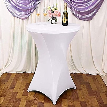 LANNY Ø60cm*H110cm White Cocktail Dining Set Bundle: Home Round Plastic Bar Folding Table-ZY60H+Spandex Stretchable Square Corners Tablecloth/Cover for Kitchen/Restaurant/Party/Wedding/Events