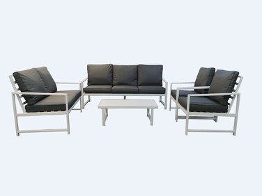 - 7 SEATER WHITE METAL BALCONY SET WITH GREY CUSHION
