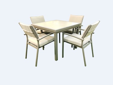 ALUMINIUM DINING SET WITH BEIGE CUSHION (TABLE SIZE: 90*90CM)