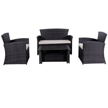 Carrefour D-Malibu Wicker Coffee Table With Chair Set Grey Pack of 4