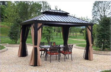 Yulan Metal Frame Outdoor Gazebos Garden Pavillion Tent With Double Curtain Aluminum Hardtop 342