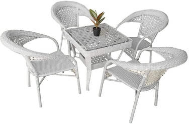 Yulan Patio RATTAN COFFEE TABLE Garden Furniture Sets, (4-SEATER) (Black and White) 395