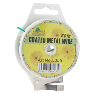 GL Plastics Coated Metal Wire Green 50m is a durable and versatile wire that is coated with a green plastic material for added protection and aesthetic appeal.