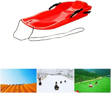 Outdoor Sports Plastic Skiing Boards Sand Board Snowboard With Rope For Double People,Sand Snow Sleds for Kids and Adult (Red)