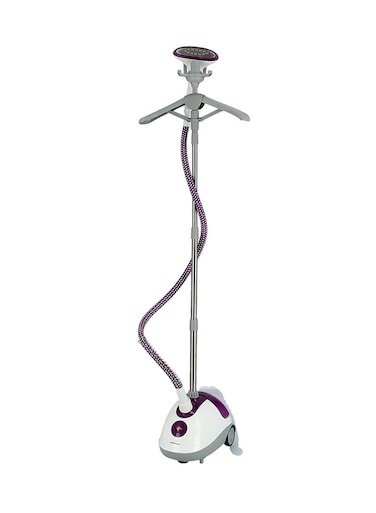 With the Olsenmark garment steamer, you can easily remove stubborn wrinkles and creases on your clothes and get your job done. The white and purple garment steamers come with a 1.8L water tank and can be used for a long time continuously without refilling the water in between. The heating element gets heated up instantly in 35-45 seconds with a high steam flow rate of 30g/min and does the job efficiently, making your life much simpler. It has an ergonomic grip that provides safe and comfortable use without overheating and produces the most effective results. The steamer can be used for steaming a variety of fabrics and gives the most efficient performance without burning them. It is simple to operate. The clothes hanger helps you hang clothes like dresses, shirts, suits, blazers, and so on. The high-quality telescopic poles allow easy storage, reducing space consumption. The steamer also has wheels, which makes it portable and easy to carry around. The steamer is white and purple, measures 400x280x310mm in size, and weighs 4.0kg. '