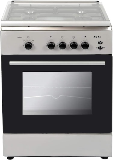 Akai Freestanding Gas Range Cooker With 4 Burners, Silver/Black, CRMA606SC