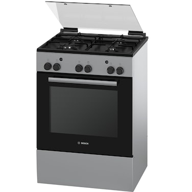 Bosch steel 60cm gas cooker, enamelled top and pan suport, full safety