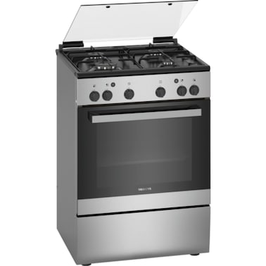 The Siemens 4 Burners Full Flame Safety Gas Cooker HG2L10B51M in Silver is a stylish and efficient cooking appliance for any kitchen.