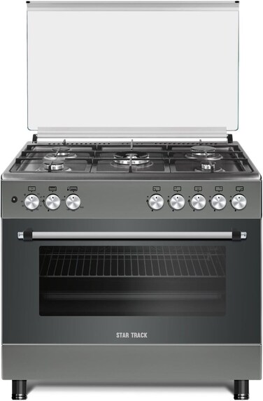 Star Track Freestanding Gas-Cooker 5-Burner Full-Safety, (Full Sabaf) Steel Cooker, Gas Oven With Rotisserie, Automatic Ignition(Grey) Sg-Kl9060-G