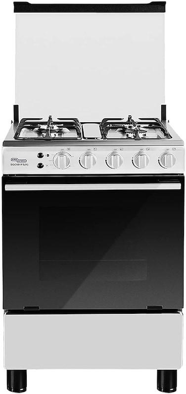 Super General Freestanding Gas-Cooker 4-Burner Full-Safety, Stainless-Steel Cooker, Gas Oven With Rotisserie, Thermostat, Auto-Ignition, Silver, 60 x 60 x 85 cm, SGC-601-FS, 1 Year Warranty