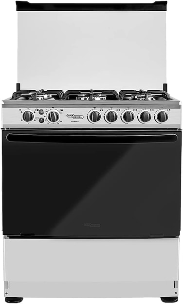 Super General Freestanding Gas-Cooker 5-Burner Full-Safety, Steel Cooker, Gas Oven With Thermostat, Rotisserie, Automatic Ignition, Silver, 75x50x90cm, SGC-801-FS