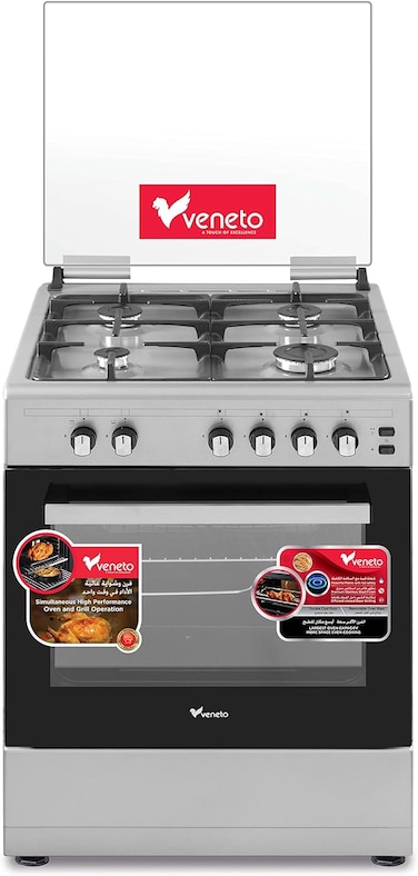 Veneto 60cm 4 Burner Gas Cooker with Wide Cast Iron Pan Support, Closed Door Grilling, Made in Turkey - VG66C