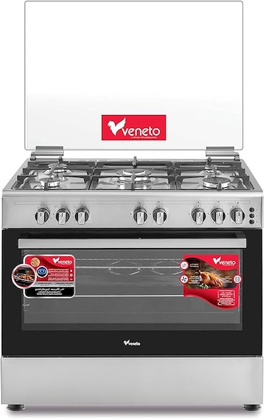 Veneto 90cm 5 Burner Gas Cooker with Convection Fan, Thermostat Control, Closed Door Grilling, Made in Turkey - VG96CCF