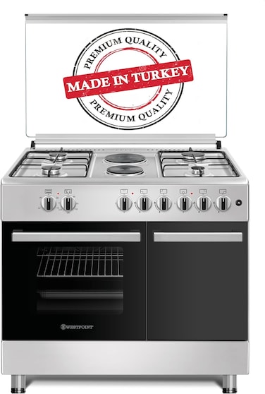 Westpoint 90x60cm Freestanding Cooker, Full Gas Cooking Range with 6 Burners Automatic Ignition & Full Safety, Cast Iron Pan Support, MADE IN TURKEY WCER-9642E6IBOD Stainless Steel Finish