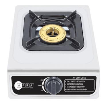 AFRA Single Burner Gas Stove, Compact Design, Cast Iron Burner, Enamel Pan Support, Stainless Steel Surface, G-MARK, ESMA, ROHS, And CB Certified, AF-0001GSSS 2 Years Warranty