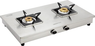 With our hassle-free cooking system, you can enjoy cooking and create delicious masterpieces with ultimate ease. The Geepas double burner gas stove is made of high-quality stainless steel and has a rigid body with a brushed aluminum finish. It is designed for convenience and safety. This classic and stylish stove in silver enhances the look of your kitchen counter, and it is constructed from the finest quality materials. This versatile gas stove makes cooking a safe and convenient experience with its two high-efficiency burners and high-grade aluminum mixing tube. The heavy-duty Indian brass burners are designed with a 650-gram heavy pan support and an anti-corrosion coating to accommodate even large utensils. The gas burner has an auto-piezo ignition feature and comfortable grips that help with safe handling. Due to their innovative design and high-quality pan supports, utensils are stable and stay in place while cooking. In addition to looking stylish, this classic stovetop is also incredibly efficient and durable. This stove can be used every single day. The cooktop is also easy to clean and maintain and can last a lifetime. This stove top comes with a high-quality automatic gas valve and 360-degree rotating nozzle. The cooktop does not take up much space in your kitchen and can easily be moved around. The two burners have improved gas flow, which helps distribute fire and heat evenly, so your meals cook faster. Additionally, the stove is low in gas consumption, saving up to 60%, resulting in a better flame for faster cooking. It is also convenient for daily use. The drip tray is composed of quality materials that provide durability and are long-lasting as well as easy to clean. The easy-to-control knobs with a steel finish will make cooking easier.