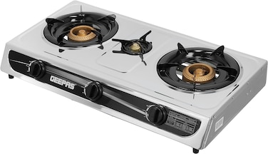 Geepas Stainless Steel Gas Cooker, Auto Piezo Ignition, Triple Gas Burner, Low Gas Consumption, FFD, Cast Iron Mixing Tube