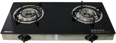 Nobel Gas Stove With Dual Gas Burner, 1 x 90mm Single Burner (3, 0kW ) + 1 x 90mm Double Burner (3, 5kW) With Glass Black Brass Glass Top Auto Ignition Double Burner NGT2111 With 1 Year Warranty