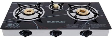 Olsenmark Tempered Glass Triple Burner Gas Stove - Auto Piezo Ignition - Flame Failure Safety Device - Stainless-Steel Drip Tray